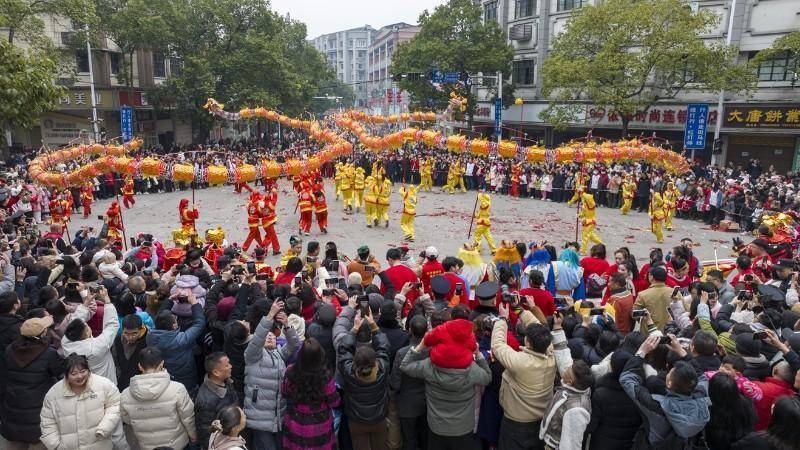 舞龙比拼。受访单位供图人民网长沙2月5日电 近日,湖南省怀化市洪江区“洪福洪江年、小城过大年”2026年新春文旅盛宴即将启幕,农历小年至3月底,一系列融合传统韵味与现代气息的精彩民俗活动,一场贯穿整个新春时节的文化盛宴将上演。